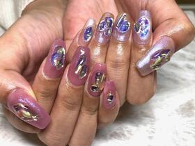 お客様ネイルのご紹介です♪長めのスクエアオフのお爪に左右で違うカラーを塗布^^大きめのオーロラパーツを真ん中に置いてキラキラネイルの完成です♪最後にパーツの部分だけぷっくりさせているところもポイントです^^キラキラパーツ、随時入荷中〜♪担当 櫻又[image: d5de158dab5feb080573f6dab7096c80.jpg]